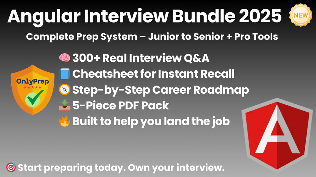 This is the complete Angular interview prep system. Five powerful resources — crafted by frontend engineers, based on real interview patterns, and built to help you study smarter, code cleaner, and get hired faster.