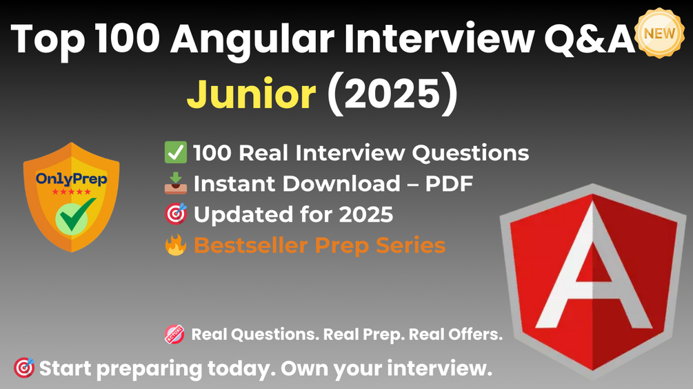 Built from real interview patterns, this pack includes the exact types of questions that junior Angular candidates face at startups, agencies, and tech companies in 2025.