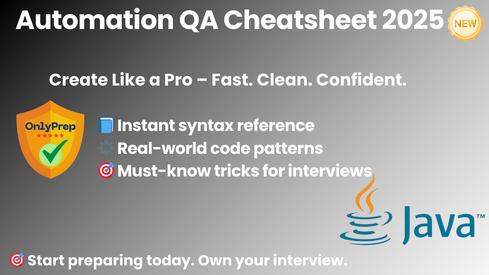 This cheatsheet is your go-to reference for modern test automation with Java. It covers core syntax, testing frameworks, reusable patterns, and essential tools — all in one clean, easy-to-scan PDF.