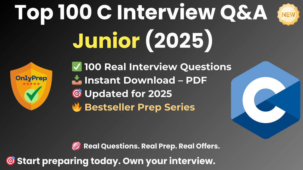 Built from real interview patterns, this pack includes the exact types of questions that junior C candidates face at startups, agencies, and tech companies in 2025.