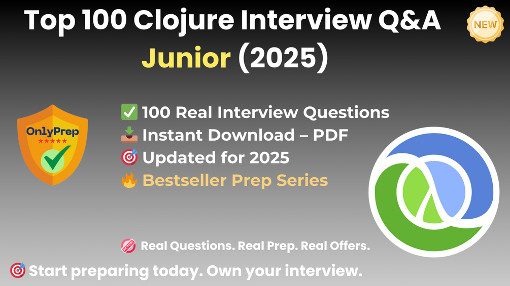Built from real interview patterns, this pack includes the exact types of questions that junior Clojure candidates face at startups, backend-focused teams, SaaS companies, and functional programming orgs in 2025.