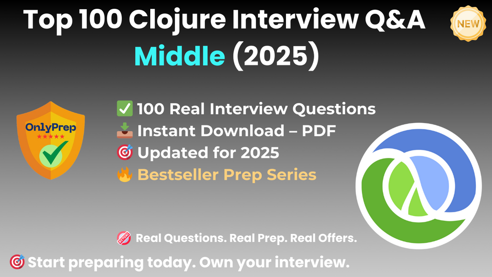 Built from real interview patterns, this pack includes the exact types of questions that mid-level Clojure candidates face at startups, SaaS companies, tooling teams, and backend-focused orgs in 2025.