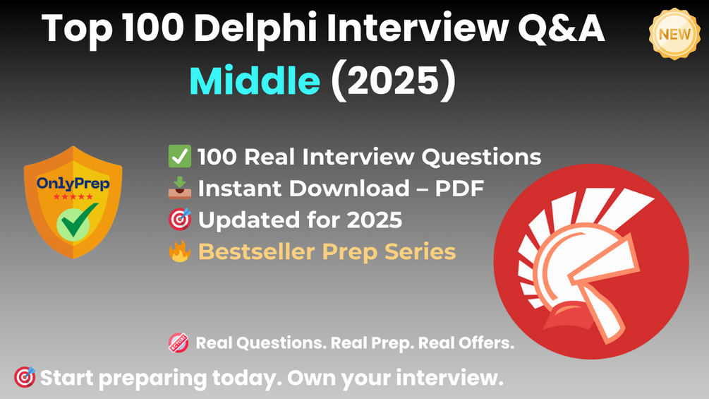Built from real interview patterns, this pack includes the exact types of questions that mid-level Delphi candidates face at software vendors, industrial automation firms, ERP providers, and legacy modernization teams in 2025.