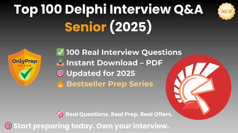 These questions reflect actual senior technical interviews from 2024β2025 β shaped by recruiter insights, team lead input, and hiring patterns across Delphi-driven industries like manufacturing, healthcare, government, and enterprise tools.