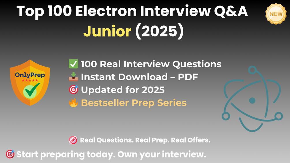 Built from real interview patterns, this pack includes the exact types of questions that junior Electron candidates face at startups, desktop SaaS teams, indie tool makers, and cross-platform product companies in 2025.