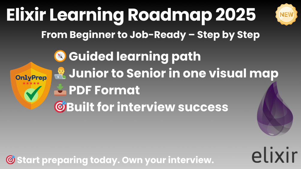 This roadmap is your visual guide to becoming a confident Elixir developer. Whether you're just starting out or preparing for backend, full-stack, or product-focused job interviews — this PDF shows you exactly what to learn, in what order, and why it matters.