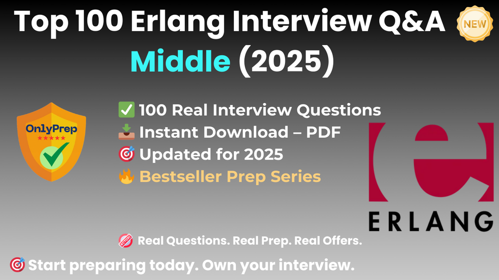 Built from real interview patterns, this pack includes the exact types of questions that mid-level Erlang candidates face at startups, agencies, and tech companies in 2025.