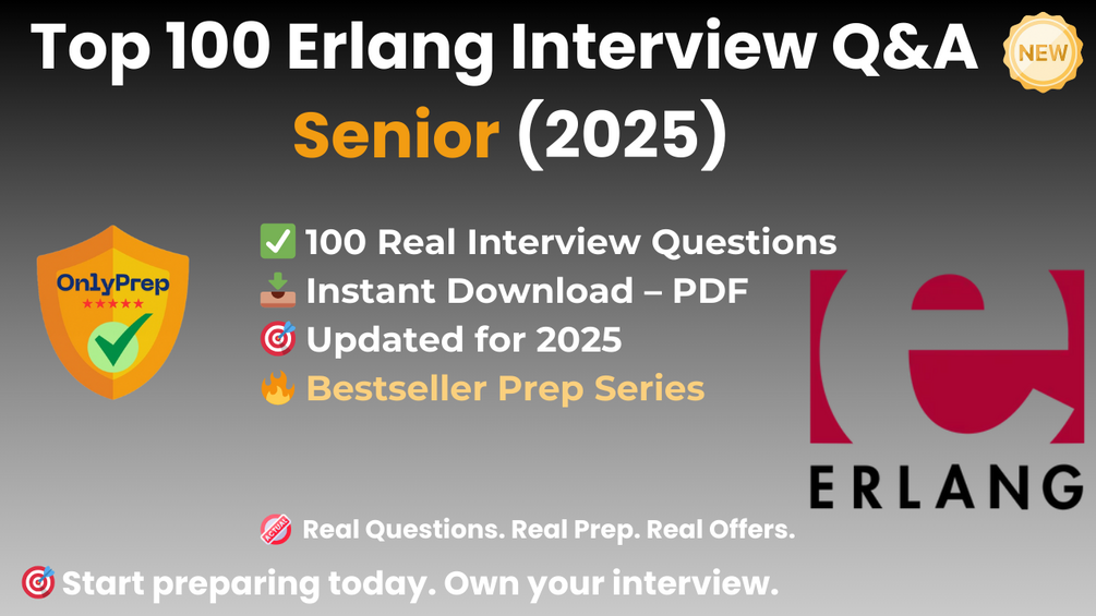 Built from real interview patterns, this pack includes the exact types of questions that senior Erlang candidates face at startups, agencies, and tech companies in 2025.