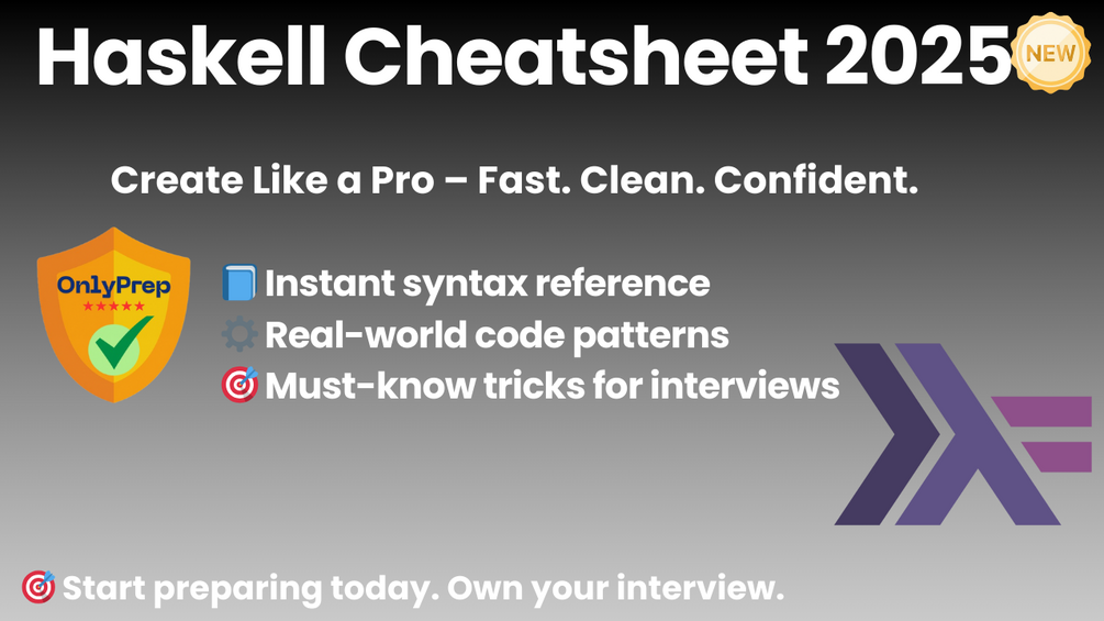 This cheatsheet is your go-to quick reference for Haskell development, covering functional idioms, type patterns, common libraries, and real-world tips. Whether you're prepping for a tech interview, writing expressive backend logic, or leveling up your Haskell fluency — this sheet is built to save time and boost your confidence.