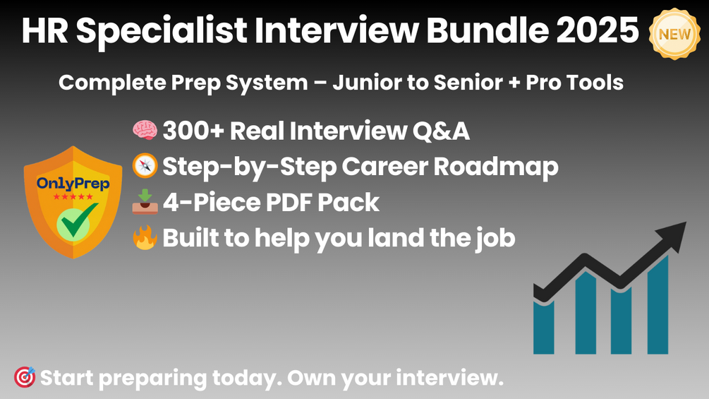 This is the complete HR Specialist interview prep system. Five carefully designed resources — created by experienced HR professionals and mentors — based on real interview formats and what companies expect in 2025.