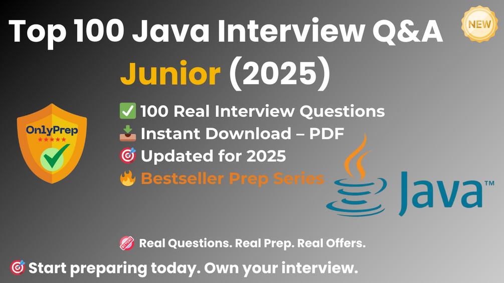 Built from real interview patterns, this pack includes the exact types of questions that junior Java candidates face at startups, agencies, and tech companies in 2025.