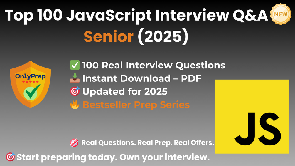 Built from real interview patterns, this pack includes the exact types of questions that senior JavaScript candidates face at startups, agencies, and tech companies in 2025.