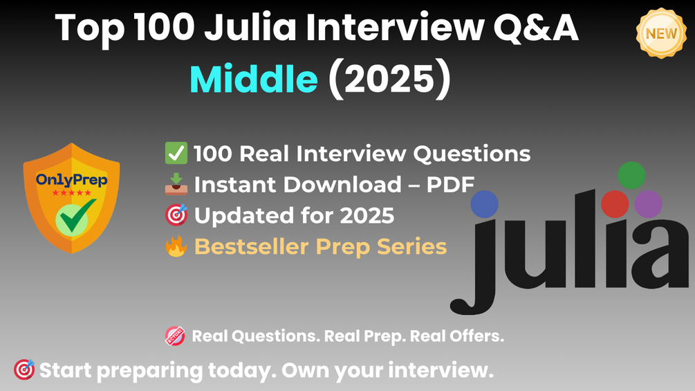 Built from real interview patterns, this pack includes the exact types of questions that mid-level Julia candidates face at startups, research labs, data science teams, and high-performance computing environments in 2025.