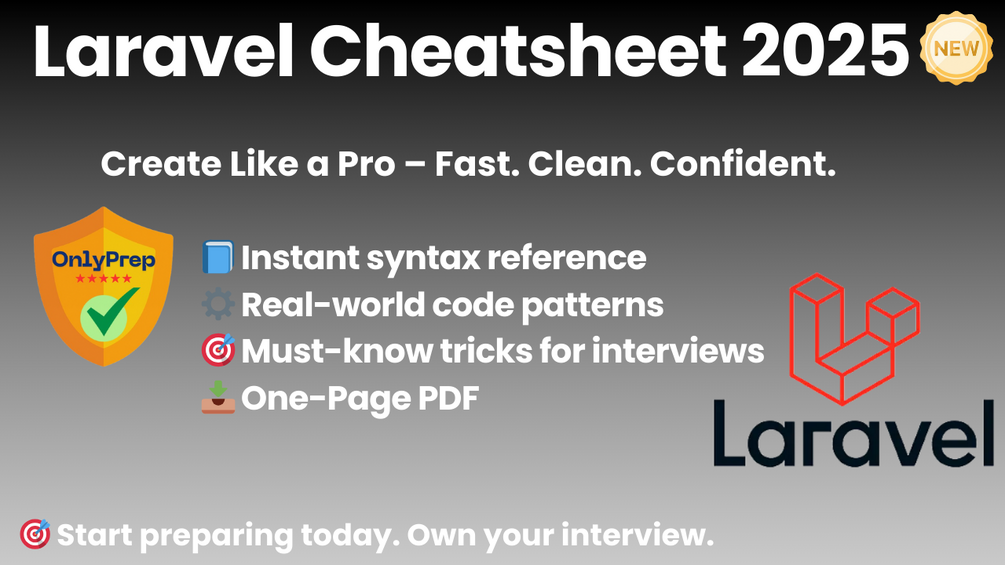 This cheatsheet is your go-to quick reference for Laravel development, covering controller logic, Eloquent patterns, modular architecture, and real interview tips. Whether you’re prepping for a backend tech screen, building production apps, or leveling up your Laravel workflow — this sheet is built to save time and boost your confidence.