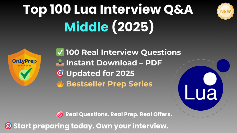Built from real interview patterns, this pack includes the exact types of questions that mid-level Lua candidates face at startups, game studios, scripting-heavy teams, and tech companies in 2025.