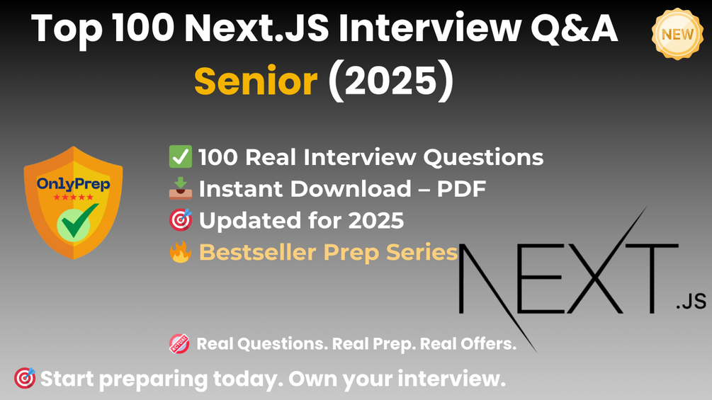 Built from real interview patterns, this pack includes the exact types of questions that senior Next.js candidates face at SaaS companies, product-driven startups, fintech teams, and enterprise web platforms in 2025.