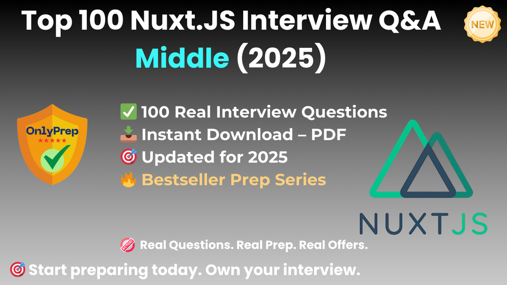 Built from real interview patterns, this pack includes the exact types of questions that mid-level Nuxt.js candidates face at SaaS companies, product teams, frontend-focused startups, and JAMstack-heavy web platforms in 2025.