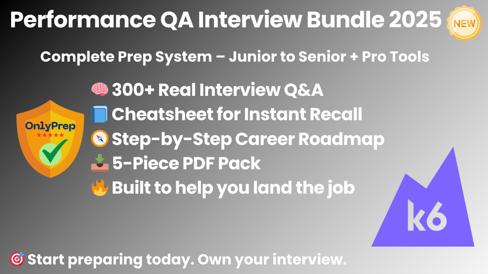 This is the complete Performance QA interview prep system. Five carefully designed resources — created by experienced performance engineers and QA mentors — based on real interview formats and what companies expect in 2025.