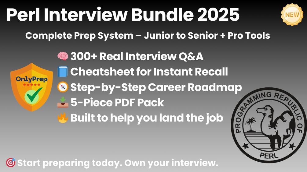This is the complete Perl interview prep system. Five powerful resources — crafted by experienced Perl developers, automation engineers, and data wranglers, based on real hiring patterns, and built to help you write clean scripts, solve real-world problems, and land your next Perl-focused role with confidence.