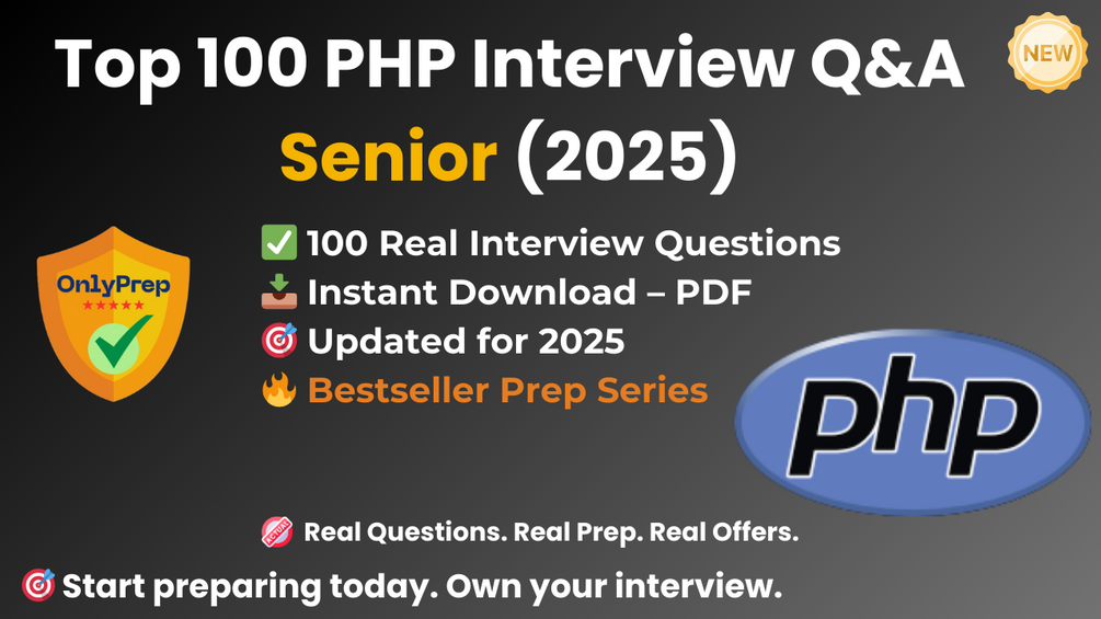 Built from real interview patterns, this pack includes the exact types of questions that senior PHP candidates face at startups, agencies, and tech companies in 2025.