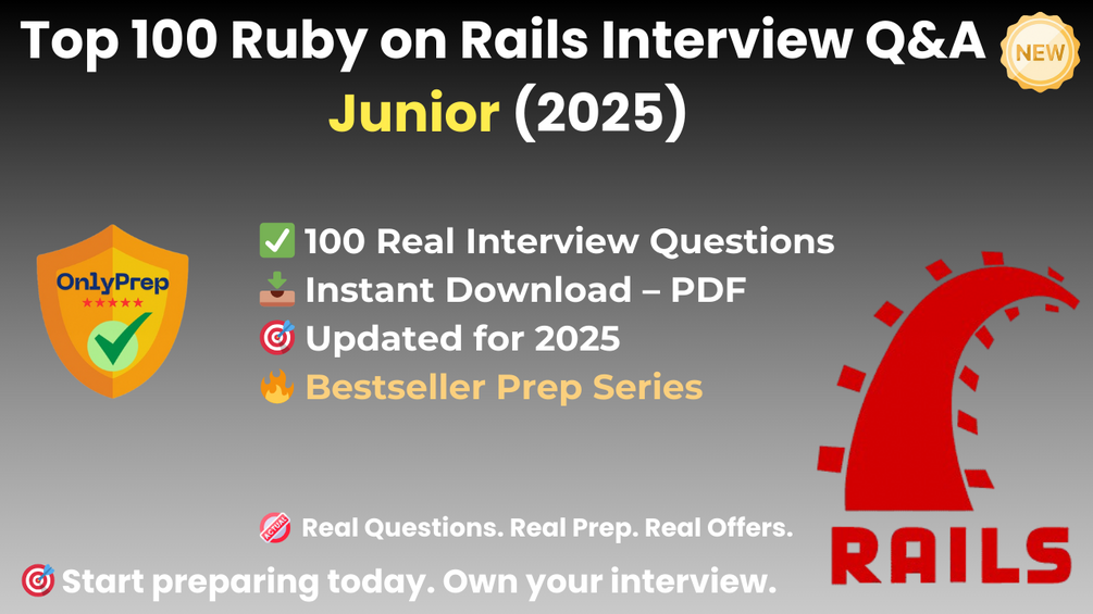 Built from real interview patterns, this pack includes the exact types of questions that junior Ruby on Rails candidates face at startups, agencies, and tech companies in 2025.