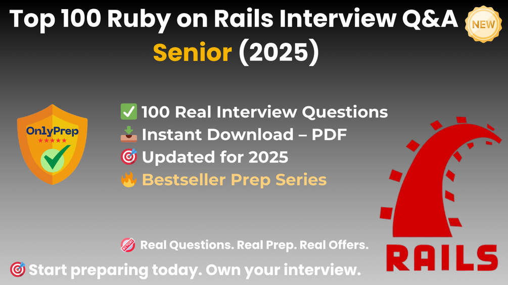 Built from real interview patterns, this pack includes the exact types of questions that senior Ruby on Rails candidates face at startups, agencies, and tech companies in 2025.