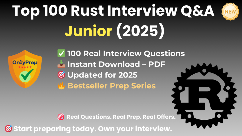 Built from real interview patterns, this pack includes the exact types of questions that junior Rust candidates face at startups, agencies, and tech companies in 2025.