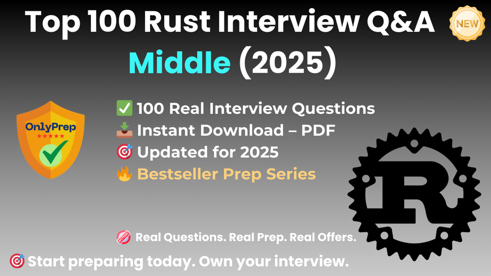 Built from real interview patterns, this pack includes the exact types of questions that mid-level Rust candidates face at startups, agencies, and tech companies in 2025.