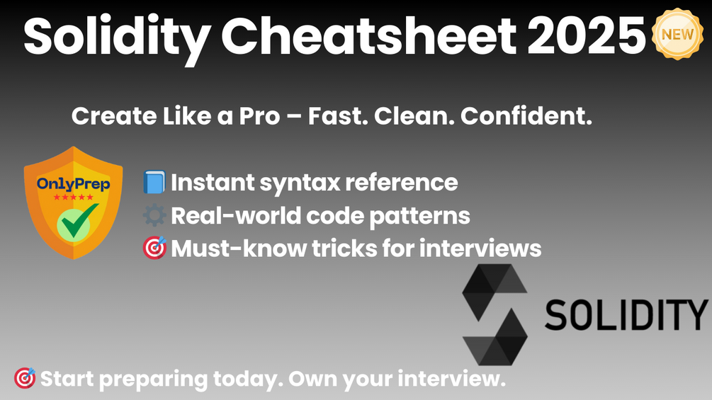 This cheatsheet is your go-to reference for modern smart contract development on Ethereum and other EVM-compatible chains. It covers essential syntax, contract structure, patterns, and security tips used to build secure and scalable Web3 applications. Whether you're learning, building, or prepping for a job — this guide helps you move faster and code with confidence.