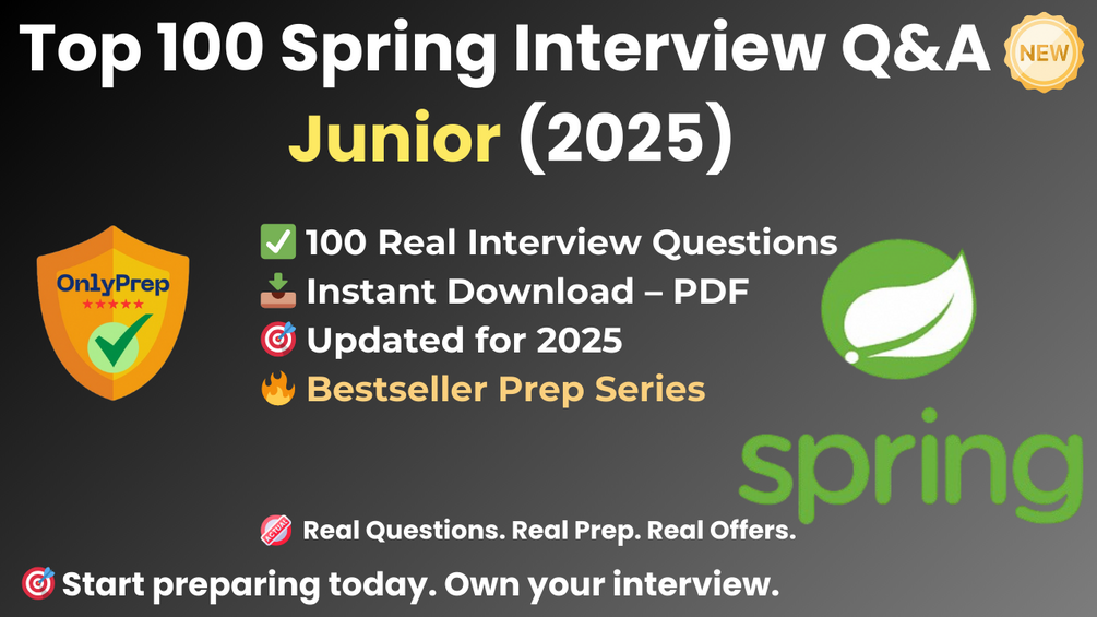 Built from real interview patterns, this pack includes the exact types of questions that junior Spring candidates face at startups, agencies, and tech companies in 2025.