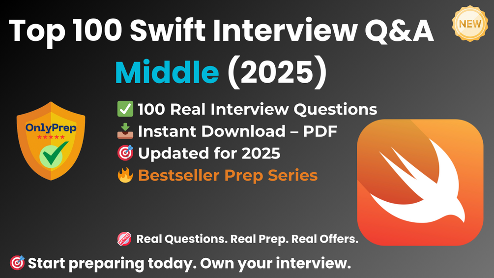 Built from real interview patterns, this pack includes the exact types of questions that middle Swift candidates face at startups, agencies, and tech companies in 2025.