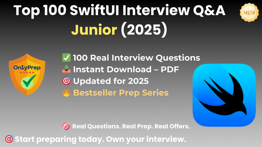 Built from real interview patterns, this pack includes the exact types of questions that junior SwiftUI candidates face at app startups, iOS product teams, design-driven companies, and mobile dev studios in 2025.