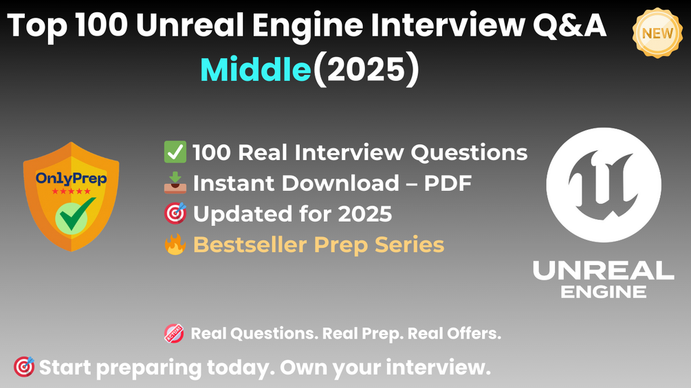 Built from real interview patterns, this pack includes the exact types of questions that mid-level Unreal Engine candidates face at game studios, simulation companies, XR product teams, and interactive 3D platforms in 2025.