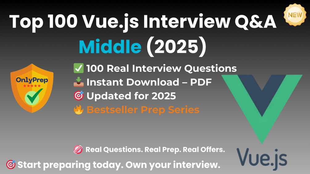 Built from real interview patterns, this pack includes the exact types of questions that mid-level Vue.js candidates face at startups, agencies, and tech companies in 2025.